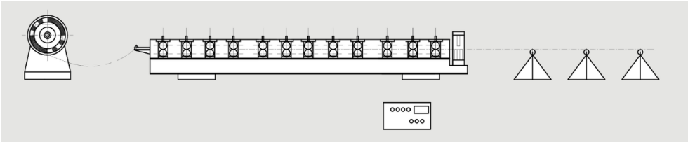 Decoiler → ManuelPré-CUtahter →GuiderFeeding→RouleauFormiseSBystème → Hydraulique